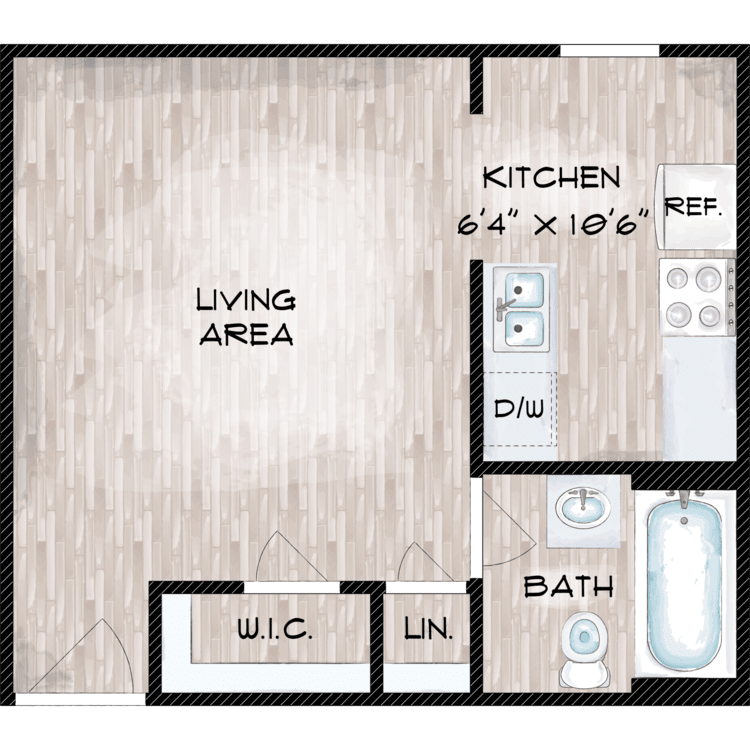 You’ll find a variety of thoughtfully designed floor plans to suit your lifestyle. Choose from cozy studios, spacious one bedroom, or comfortable two-bedroom apartments for rent. Each apartment features modern comforts like air conditioning, beautiful hardwood floors, and a well-equipped kitchen complete with a refrigerator and a range with oven, making it easy to feel at home the moment you move in.